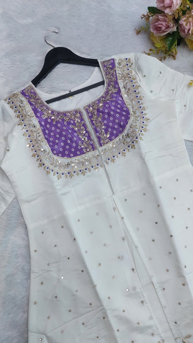 Be the first to review “Elegant Cream Roman Silk Embroidered Suit Set with Purple Yoke” Cancel reply